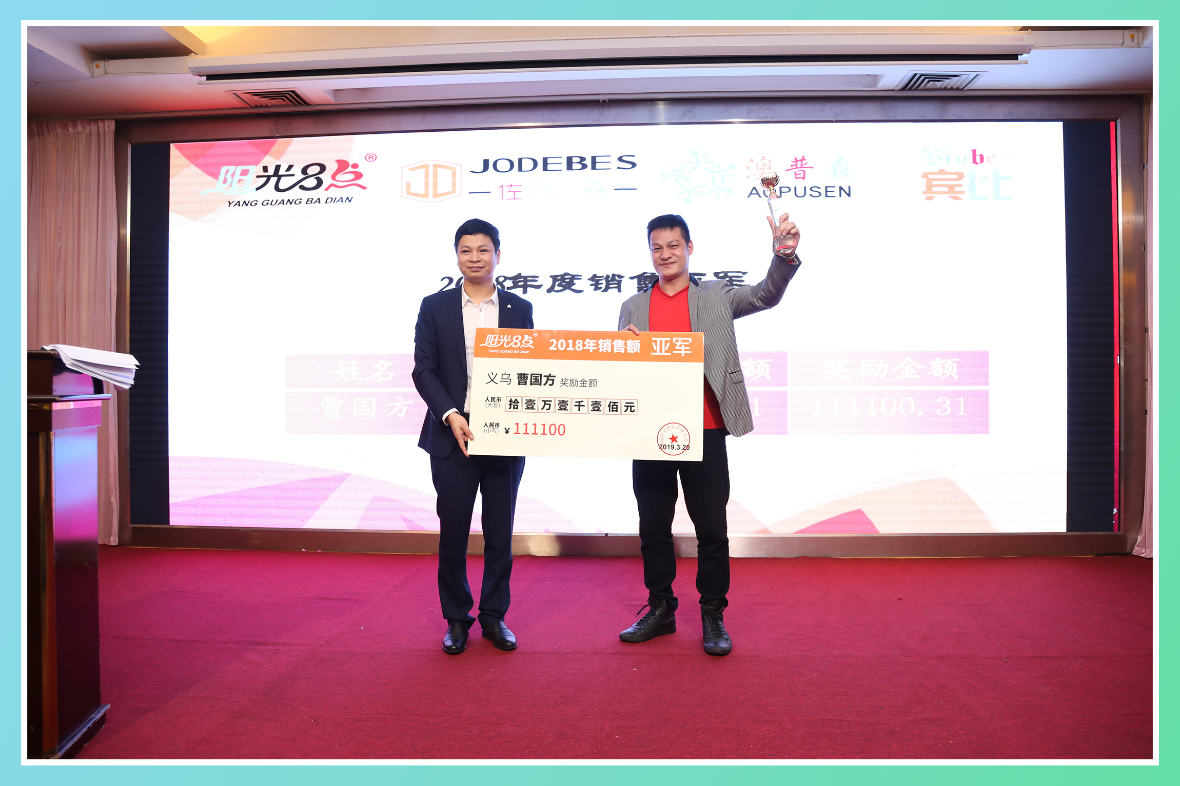 董事長袁仕偉先生給2018年度銷售冠軍頒發獎杯及獎狀